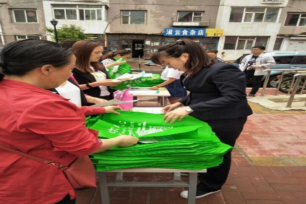 图为社区为居民发放购物袋
